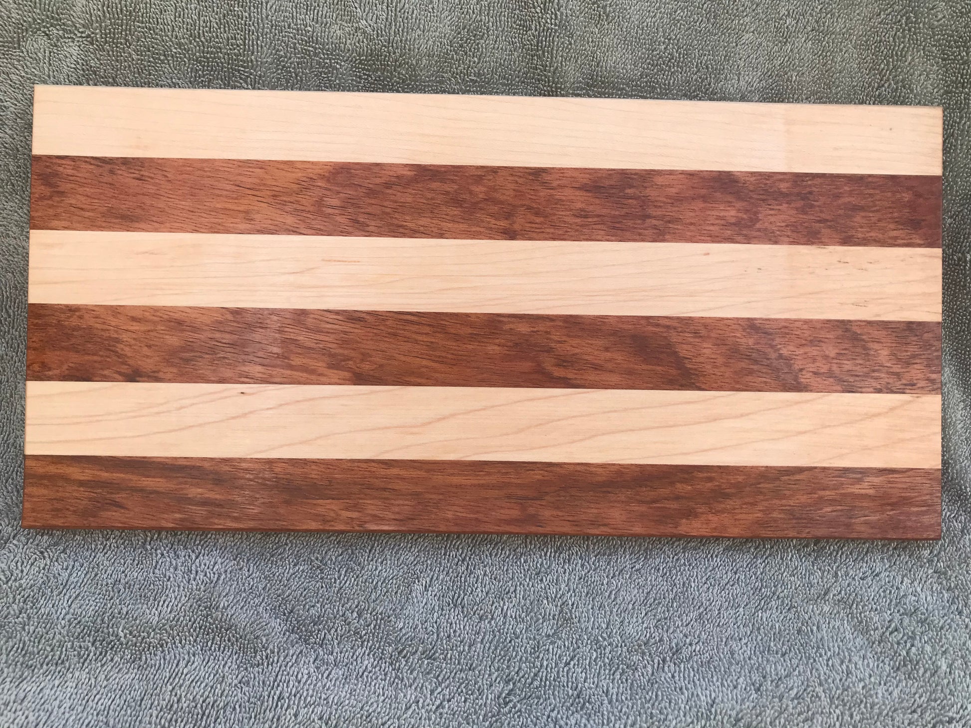 Face grain cutting board. Great for cutting bread, dicing vegetables. When not in use, turn it over and use it as a display. Small footprint makes it ideal to leave out on your countertop for quick and easy access. Wash with mild soap and do not place in dishwasher or soak in water. Approximately: 12 1/2" x 6" x 1"