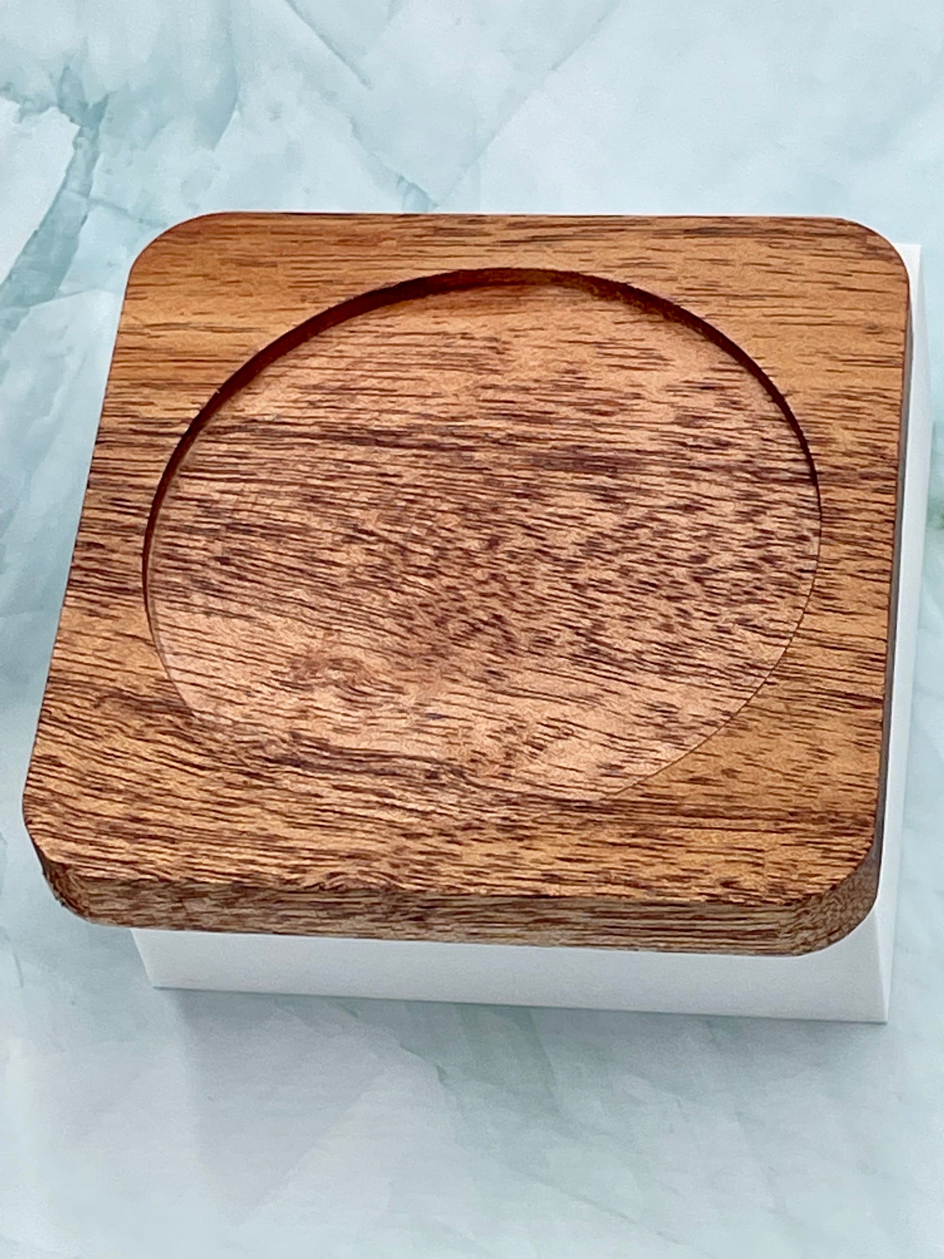 Solid wood coaster made from Brazilian Cherry wood. A set equals 4 coasters.