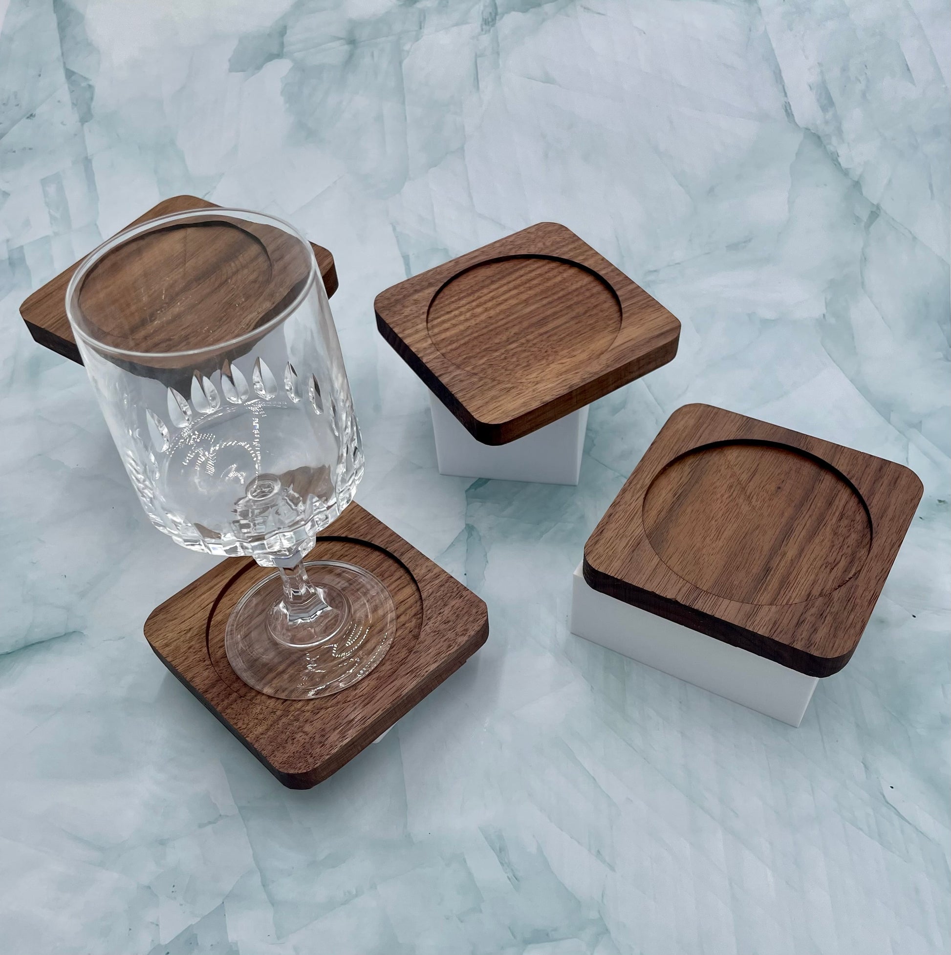 Solid wood coaster made from Walnut wood. A set equals 4 coasters.